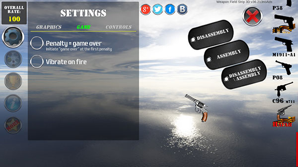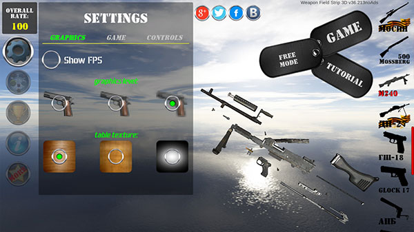 1、在本站下载安装好枪械拆解3d正版游戏后,打开进入,有界面右侧可以滑动查看到各种型号的枪,点击任意一个就可以看到其拆解和安装过程。