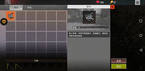零件作为发育的必需品,无论在前期还是中期我们都会需要它,它的主要用途就是来升级配方台、研发配方图,前期发育它是必不可少的需要品,这些零件获得的在路边敲罐子击杀NPC丧尸等都可以获得。