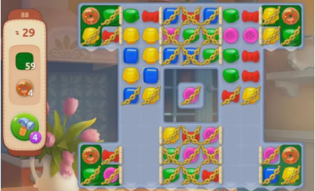 1、前期快速打开棋盘中间的锁链,形成更多的可以合成道具的机会。