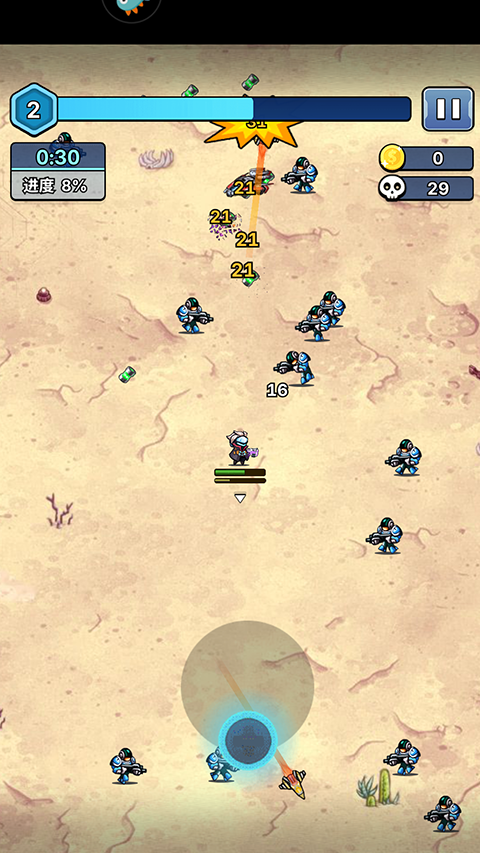 这是一款趣味好玩的割草游戏。简单的内容,通俗的玩法,独特的形象,让游戏变得简单好玩。