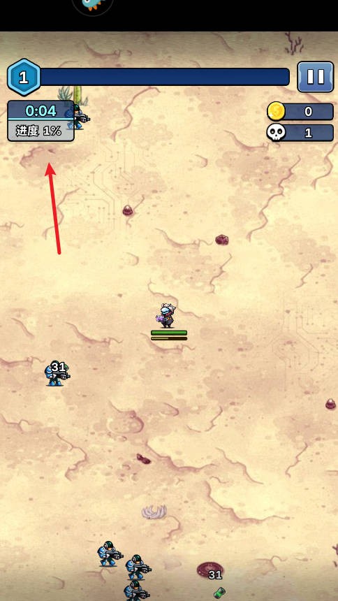 1、进入游戏后通过触摸屏幕来进行移动,人物会自动攻击。