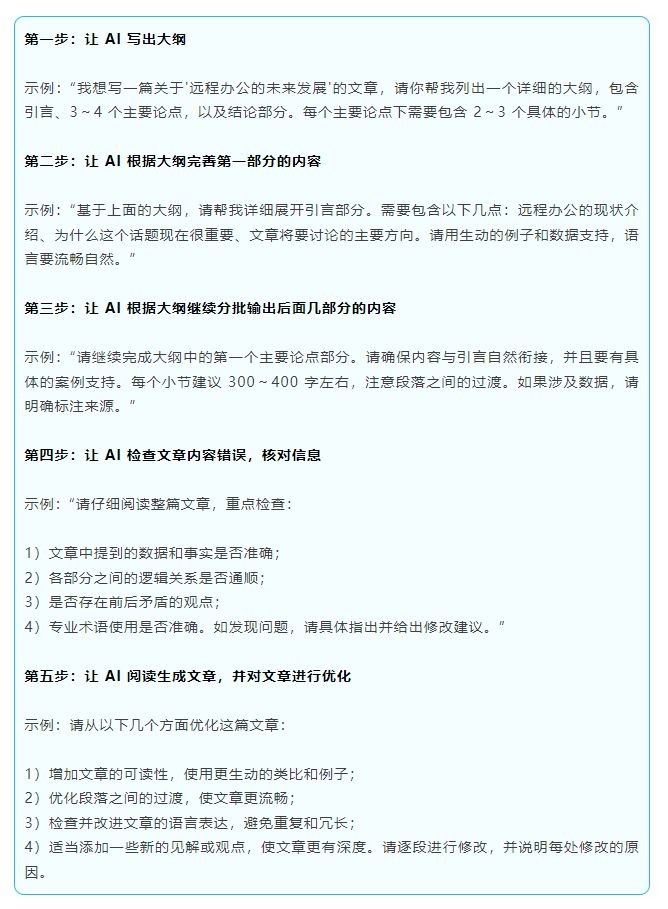 接下来用写一篇“远程办公的未来发展”的文章为例,告诉大家怎么一步步指导 AI 完成高质量写作。