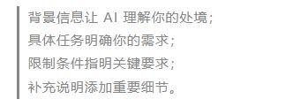 非常推荐这个简单但超级实用的“四步提问法”:背景 + 任务 + 要求 + 补充。举个例子: