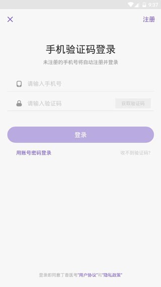 1、打开已经安装好的丁香医考app,手机注册登录;