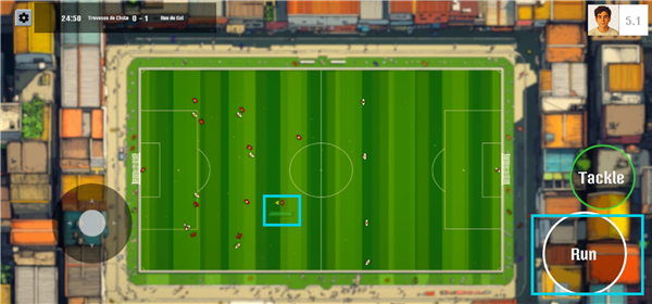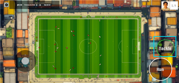 1、进入比赛后,由你开始发球,操控左边遥杆控制方向,点击【shoot】将球踢出。
