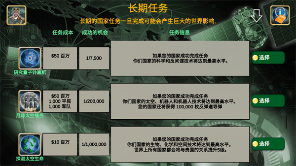 1、玩家需要准备,你需要充分的发展自己的国家并和其他44个AI国家进行作战。