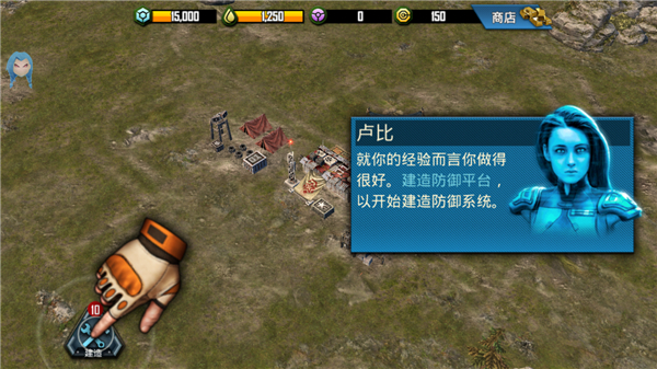 1、进入游戏,过了新手教程后,点击建造,我们需要建造一个防御系统;