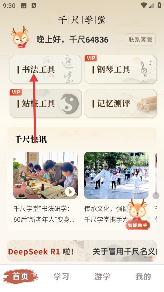 1、进入APP首页,首先点击【书法工具】进入工具页面。