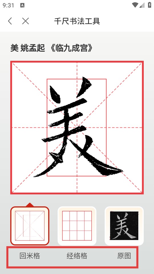 4、最后选目标字体(如姚孟起《临九成宫》),查看单字解析。