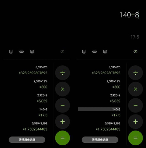 1、竖屏模式下全是大按键,基本还原了实体计算器的键位特点,还支持回看计算记录,完美领先某水果大厂计算器。