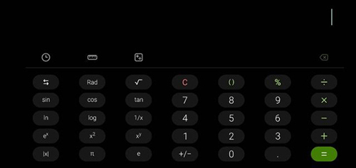 支持基本的加减乘除计算,以及百分比、平方、开根、倒数、取倒数等常用的计算功能;同时,在横屏状态下,它还可以切换成科学计算器模式,提供了更多的功能