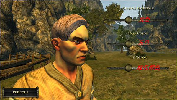 选完职业后,就进入了设计角色形象的最后一步--捏脸,本作在捏脸方面比较简单,可变量只有发型、发色、瞳孔颜色三种。