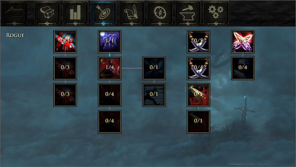3、技能页:作为一款RPG游戏,技能至关重要,玩家可以在本界面中,根据剩余的技能点自由选择学习和搭配技能,这里需要注意的是很多技能是需要前置技能支持的,要想学习,就必须要先将前置技能达到相应的等级。