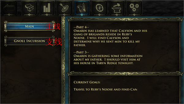 4、任务栏:游戏的任务分为主线任务和支线任务,玩家可以通过按键进行选择。