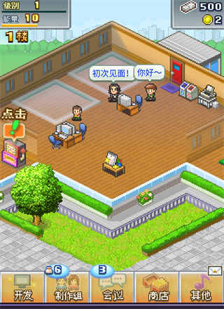 游戏的玩法很简单,就是一个社长带领自己的员工去研发游戏,想尽一切办法去提升游戏下载量。研发——选择平台——制作企划方案——选择游戏类型——确定游戏内容——然后就是员工研发游戏——排除故障——最后完成游戏开发,给游戏起个名字就OK了。