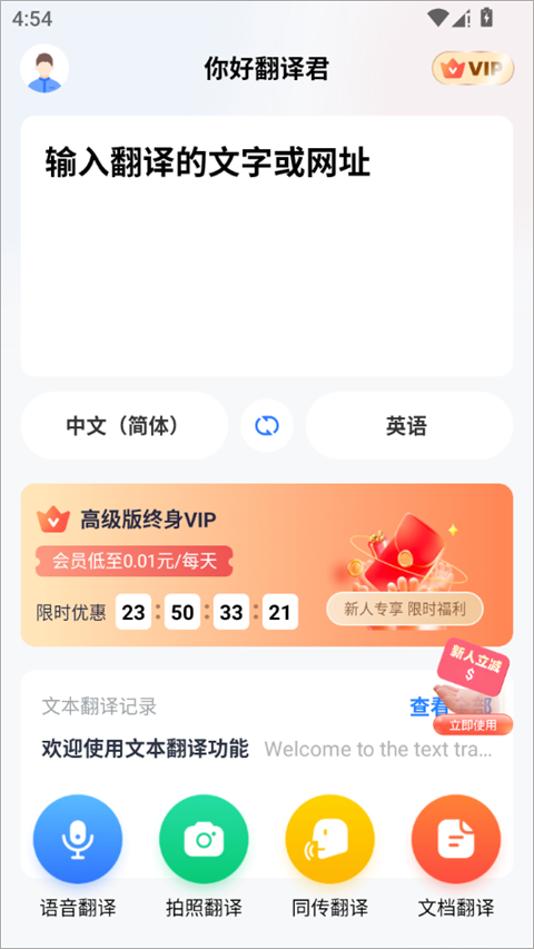 1、本站下载好你好翻译君app之后,打开软件选择需要的翻译功能