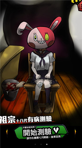 我满怀青春的有病测验是一款暗黑风格的冒险烧脑解谜手游。游戏采用了3D画面制作,构建了各种暗黑风格的游戏场景,搭配上凄厉的音乐,为玩家打造了黑暗的游戏世界。玩家可以在游戏中,进行答题,到最后玩家通关后,游戏会给出评价,测验玩家是否是真的有病。游戏的玩法是十分简单,只是血腥的画面可能给玩家带来一定的压力,但也能让玩家克服恐惧的心理。