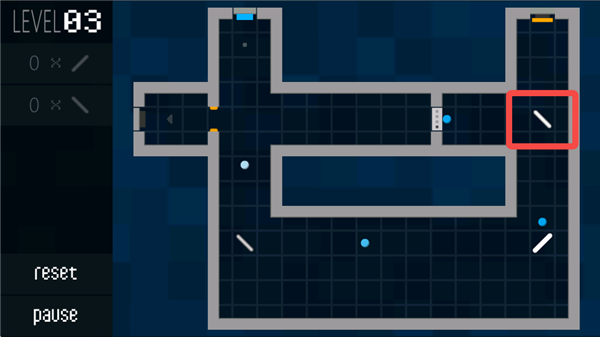 1、玩家通过合理布置挡板改变子弹轨迹,引导子弹命中指定目标完成关卡任务。