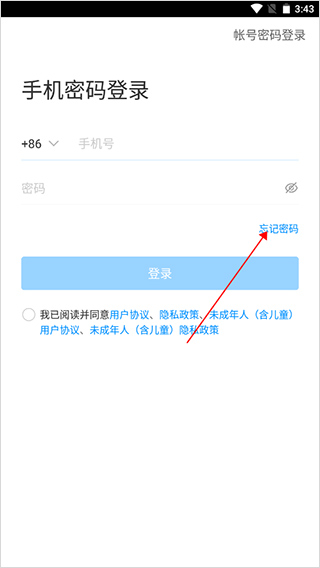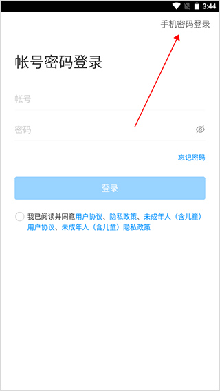 1、用户打开应用后就进入登录页面中点击右上角的【手机密码登录】