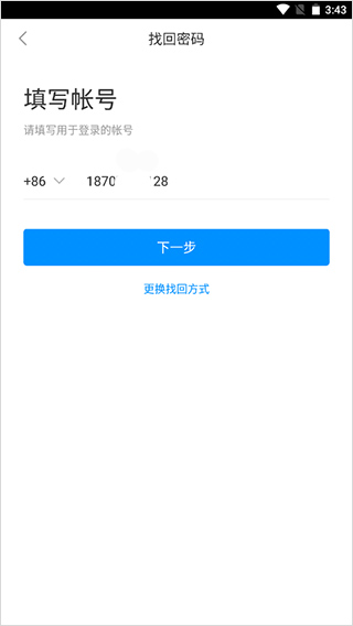 3、接着在打开的找回密码页面中输入手机号点击【下一步】
