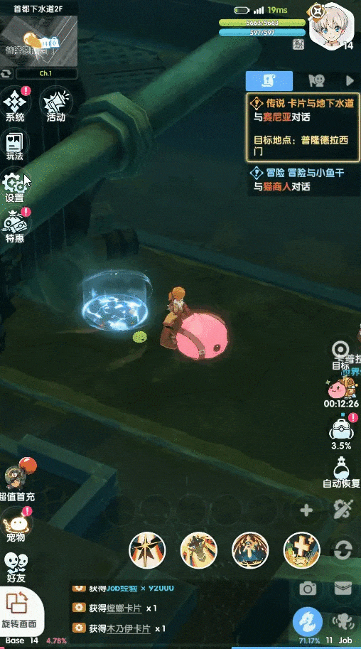 挂机有概率获得随机卡片。