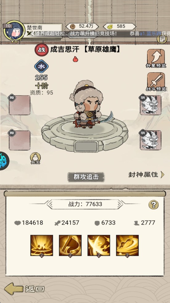 阵容组成:成吉思汗+典韦+鬼谷子+黑无常+杨戬+墨子