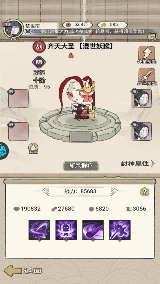 3、游戏采用全自动回合制战斗,玩家可以通过屏幕右下角的设置控制战斗的倍速或者直接跳过。