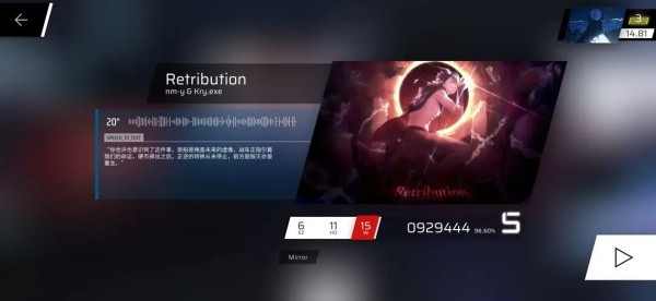 第三首最后两个长条不漏,会重新跳转第四首Retribution,后半段背景变成蓝色