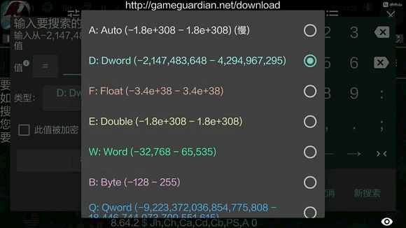 10、支持:Double、Float、Qword、Dword、XOR、Word、Byte 或 Auto 数据类型搜索。