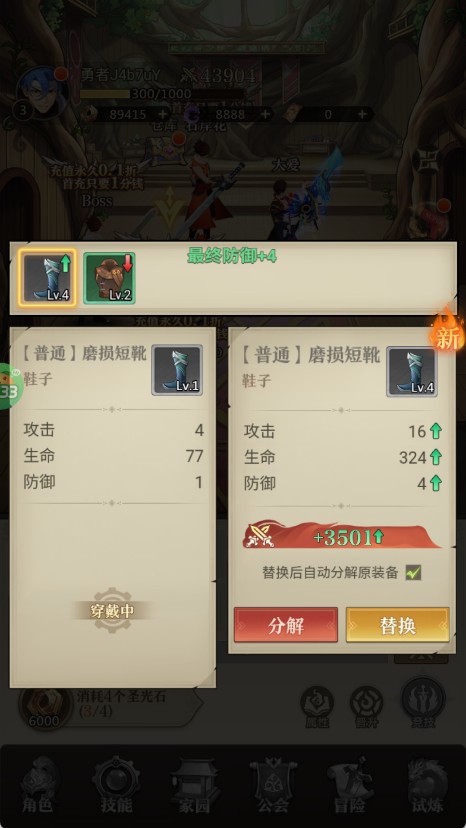 3、放置玩法和即时战斗的双重游戏乐趣,挂机系统轻松进行游戏。