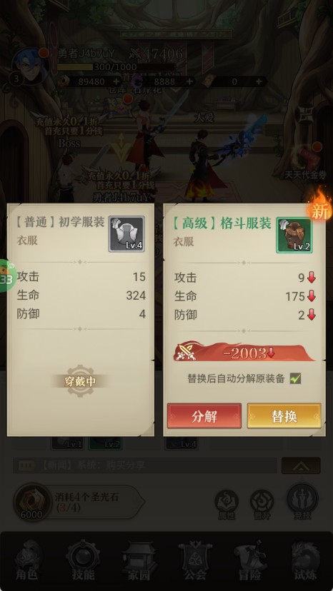3、装备有品质高低之分,带绿色箭头的代表更高级别,而标红的则说明等级偏低,建议直接分解。