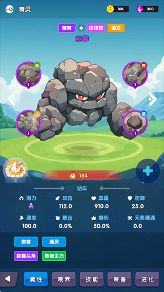 升级精英精灵的属性、技能及成长潜力,可进行属性、喂养、技能等多维度培养。