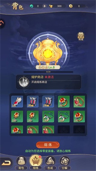 1、熔炼:一键熔炼零星装备,获取强化材料
