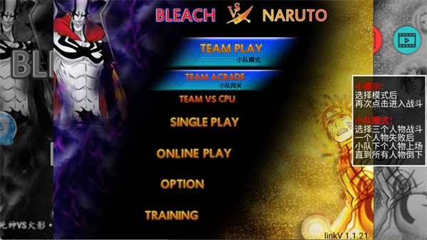 死神vs火影3.8.2官方正版是一款非常受欢迎的横版动作格斗手游。游戏是根据知名度非常高的死神和火影忍者改变而来,两个知名IP中的角色同台PK,非常的受玩家们的喜爱。游戏有着多种模式包括了1V1对战、闯关和练习模式,让玩家能够精进自己的技术。游戏中完美的还原了角色的技能,包括大招的施展,满足了玩家们的幻想,并且游戏支持联机,让玩家能够与好友进行真人作战。