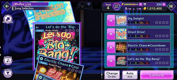 体验高自由度『沉浸式电音节奏』游玩!DJ玩家们可以享受挑战expert等级full combo快感也可以透过auto设定单纯沉浸在电音慢摇节奏中。