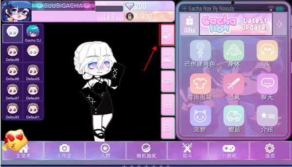1、打开Gacha Club游戏,点击屏幕右下方,选择语言为简体中文,然后点击屏幕中间即可开始游戏;