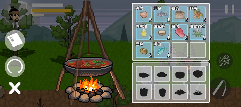 在地图中看到锅具后,即可开启烹饪功能:将背包中的食材放入锅中,再点击旁边的篝火,就能启动烹饪流程,获取增益道具。