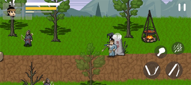 2、融入像素游戏的操作简化设计,通过方向键或点击控制角色移动、跳跃,结合简单的武学技能释放(如轻功、远程攻击),降低操作门槛。