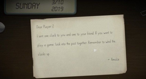 玩家一开篇需要破解的谜题是根据玩家二给其提供的线索来的,信件当中的内容也是不一样的。