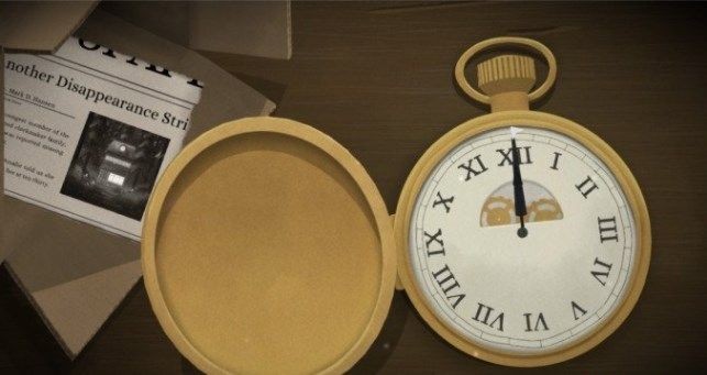 纸皮上的提示:一起回到过去,不要忘了把钟表上紧。