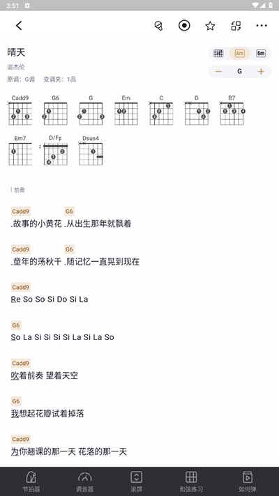 【和弦模式】支持自己编辑和弦,歌词、和弦展示,弹唱歌曲更简单。